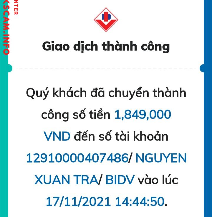 Nó hack acc fb bạn mình, rồi ib mình nhờ chuyển khoản gấp. Mình không kịp cap lại đoạn chat, nhưng hình như cùng một bọn với TRAN VAN KIEN và NGUYEN NGOC LINH vì nó gửi cho tụi bạn mình 2 stk đó. Mn cẩn thận ạ.