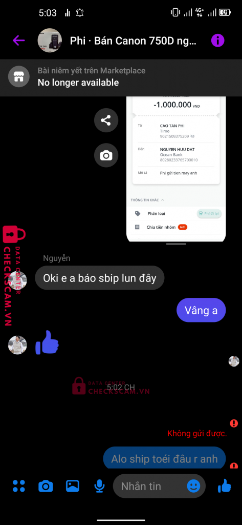 Scammer Alert: Ngyyen Huu Nam Reported: November 16, 2024 Scammer Information Full Name: Ngyyen Huu Nam Payment Gate: Ocean bank Payment Account: 80280233765700010 Category: Marketplace scams Source: Checkscam Evidence Files Report Description Lừa đảo qua Facebook Comments Your comment Add Comment No comments yet. Be the first to share your experience with this scammer.