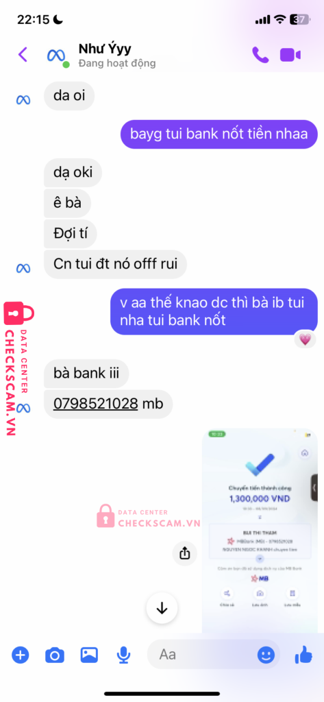 Scammer Alert: Như Ýyy Reported: November 16, 2024 Scammer Information Full Name: Như Ýyy Payment Gate: MoMo Payment Account: 0978109273 Category: Marketplace scams Source: Checkscam Evidence Files Report Description Mng né con này ra nhé back lại acc thù chỉ có 102 Comments Your comment Add Comment No comments yet. Be the first to share your experience with this scammer.
