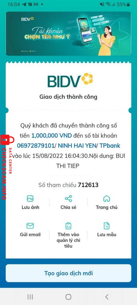 Scammer Alert: Ninh Thị hải yến Reported: November 16, 2024 Scammer Information Full Name: Ninh Thị hải yến Payment Gate: Tp bank Payment Account: 06972879101 Category: Marketplace scams Source: Checkscam Evidence Files Report Description Kêu chuyển tiền làm hồ sơ giải ngân nhưng mất hút luôn Comments Your comment Add Comment No comments yet. Be the first to share your experience with this scammer.