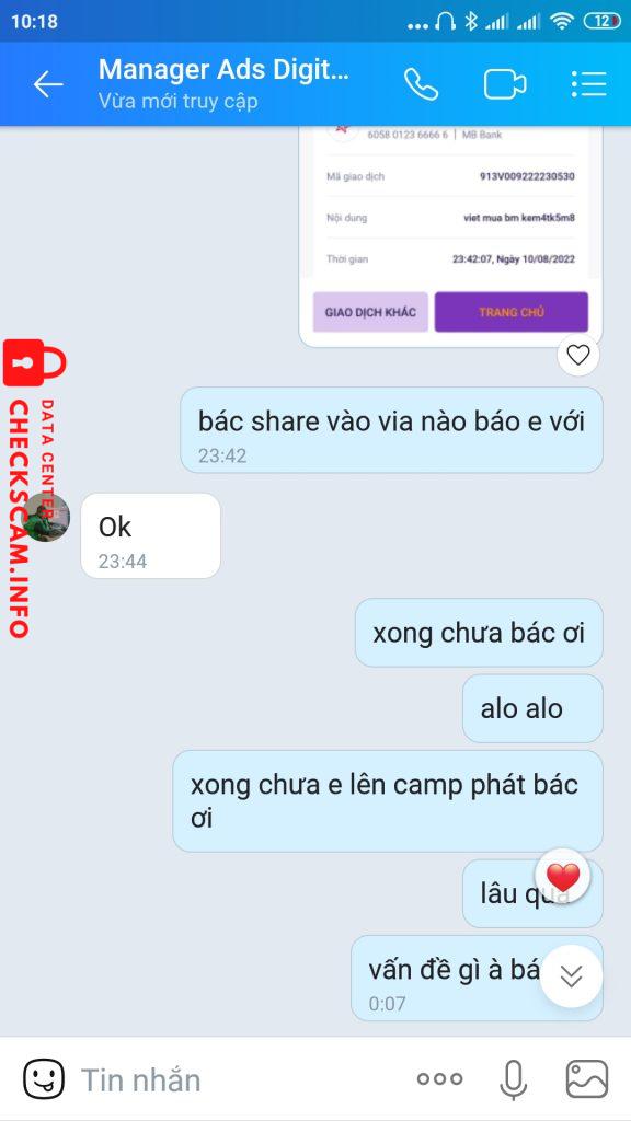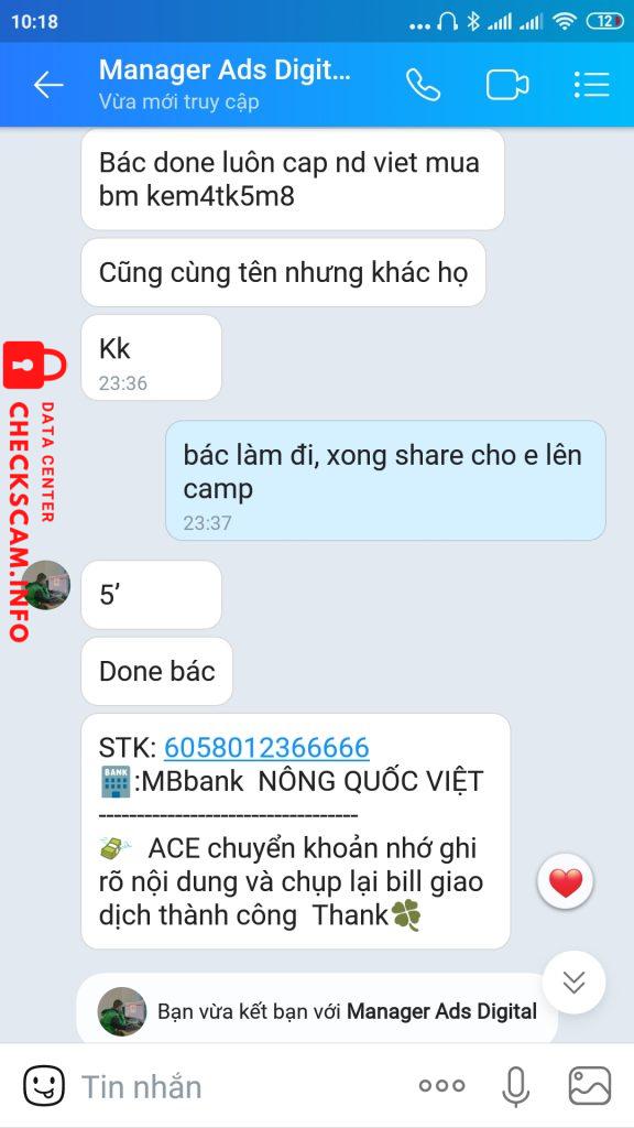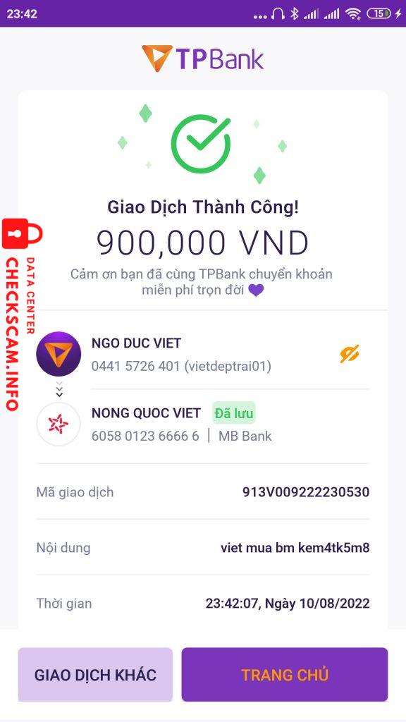 Scammer Alert: Nông Quốc Việt Reported: November 16, 2024 Scammer Information Full Name: Nông Quốc Việt Payment Gate: Mb Payment Account: 6058012366666 Category: Marketplace scams Source: Checkscam Evidence Files Report Description Lừa đảo Comments Your comment Add Comment No comments yet. Be the first to share your experience with this scammer.