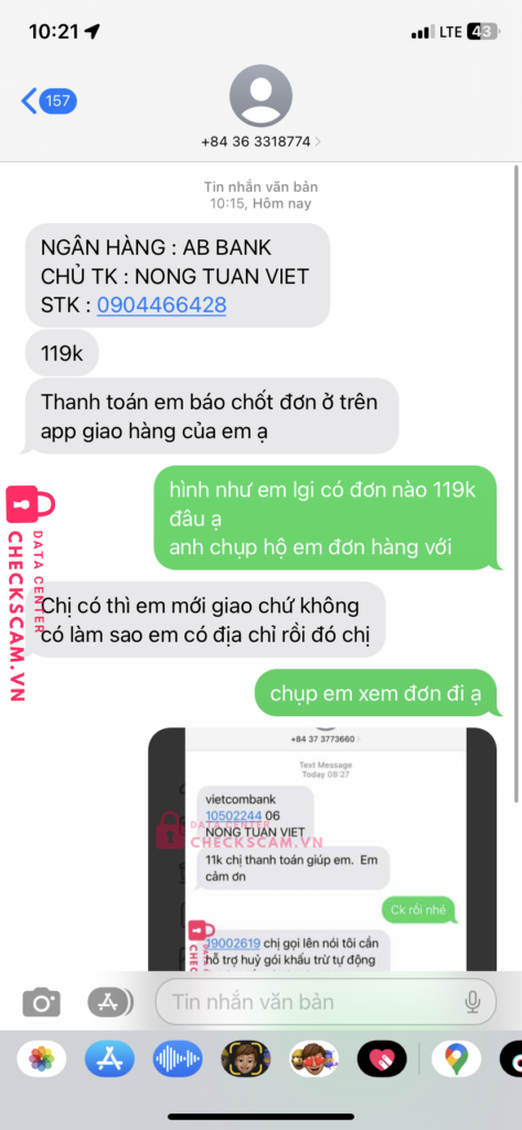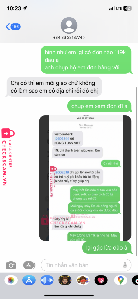 Gọi điện bảo giao hàng, hỏi bên tiktok hay shopee thì ấp úng nói bên viettel post, mình bảo k ở nhà vứt vô nhà mk ck, thì nhắn tin như vậy, thấy nghi nên mình đã biết hihi