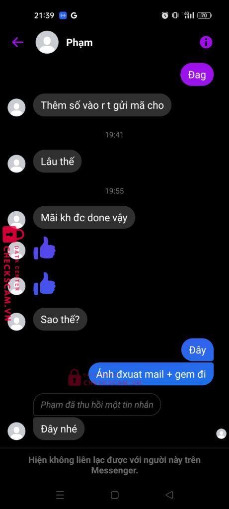 Scammer Alert: Pham Anh Vu Reported: November 16, 2024 Scammer Information Full Name: Pham Anh Vu Payment Gate: SHB Payment Account: 2008111213 Category: Marketplace scams Source: Checkscam Evidence Files Report Description Mua acc nó giao gmail, xog 5p sau back mail + chặn mess. Comments Your comment Add Comment No comments yet. Be the first to share your experience with this scammer.