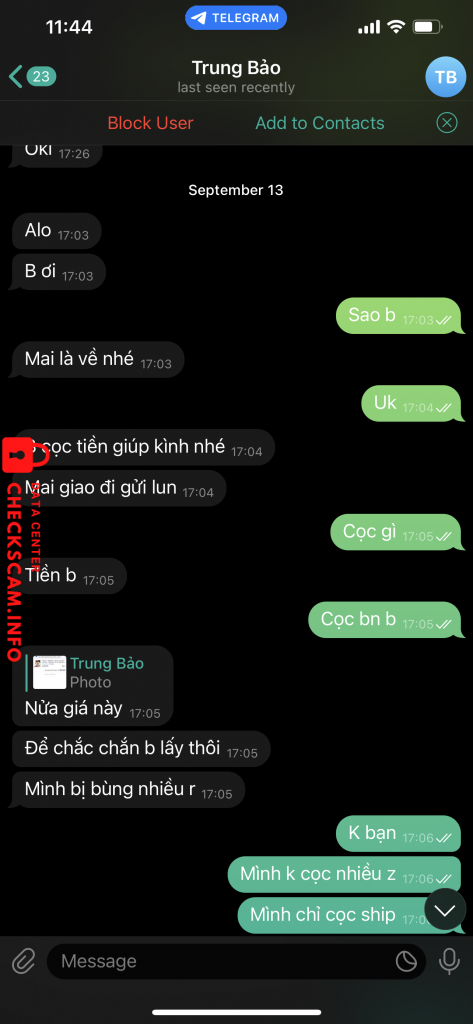 Scammer Alert: Phạm Bảo Trung Reported: November 16, 2024 Scammer Information Full Name: Phạm Bảo Trung Payment Gate: Techcombank Payment Account: 19036829363017 Category: Marketplace scams Source: Checkscam Evidence Files Report Description Hàng về k đúng hẹn giở giọng mất dạy Comments Your comment Add Comment No comments yet. Be the first to share your experience with this scammer.