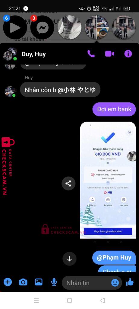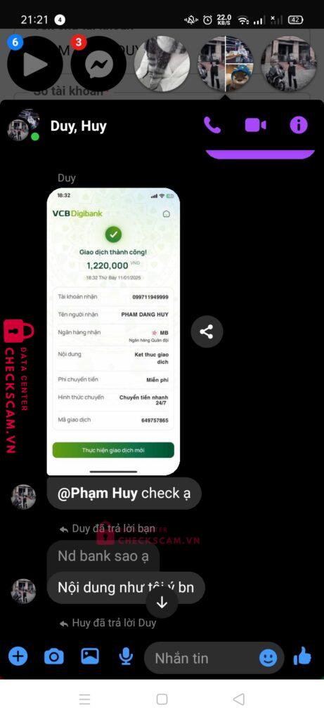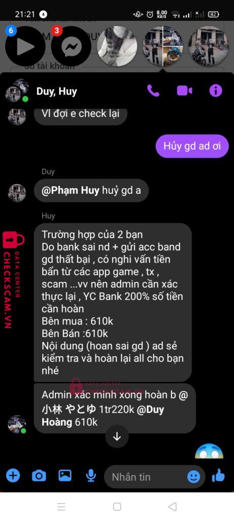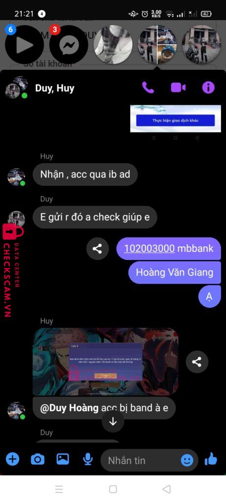 Scammer Alert: PHAM DANG DUY Reported: March 7, 2025 Scammer Information Full Name: PHAM DANG DUY Payment Gate: Mbbank Payment Account: 099711949999 Category: Marketplace scams Source: Checkscam Evidence Files Report Description Kdv gr mua bán liên quân lừa đảo Comments Your comment Add Comment No comments yet. Be the first to share your experience with this scammer.