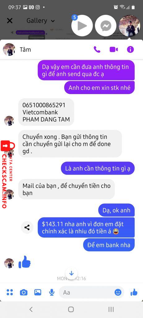 Scammer Alert: Phạm Đăng Tâm Reported: November 16, 2024 Scammer Information Full Name: Phạm Đăng Tâm Payment Gate: Vietcombank Payment Account: 0651000865291 Category: Marketplace scams Source: Checkscam Evidence Files Report Description Mình chuyển tiền nhưng không nhận được tiền Paypal Comments Your comment Add Comment No comments yet. Be the first to share your experience with this scammer.