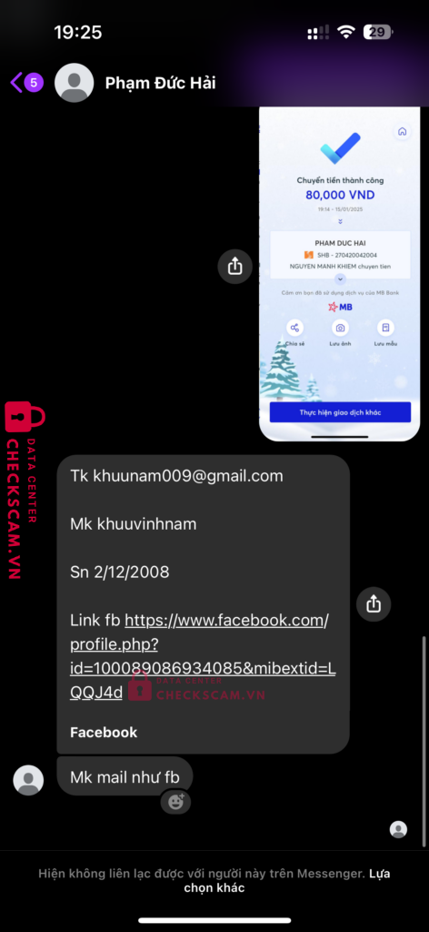 Scammer Alert: Phạm Đức Hải Reported: March 7, 2025 Scammer Information Full Name: Phạm Đức Hải Payment Gate: SHB Payment Account: 270420042004 Category: Marketplace scams Source: Checkscam Evidence Files Report Description scam acc 80k Comments Your comment Add Comment No comments yet. Be the first to share your experience with this scammer.