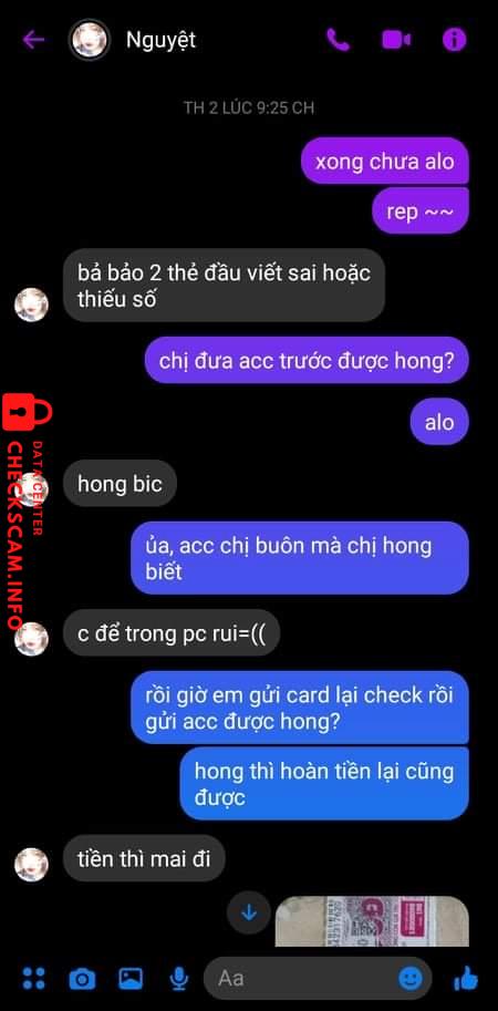Nạn nhân thứ nhất : bị lừa 2m6 card , có đăng phốt xong bảo xoá hứa hẹn trả nhưng 2 tháng rồi chưa trả