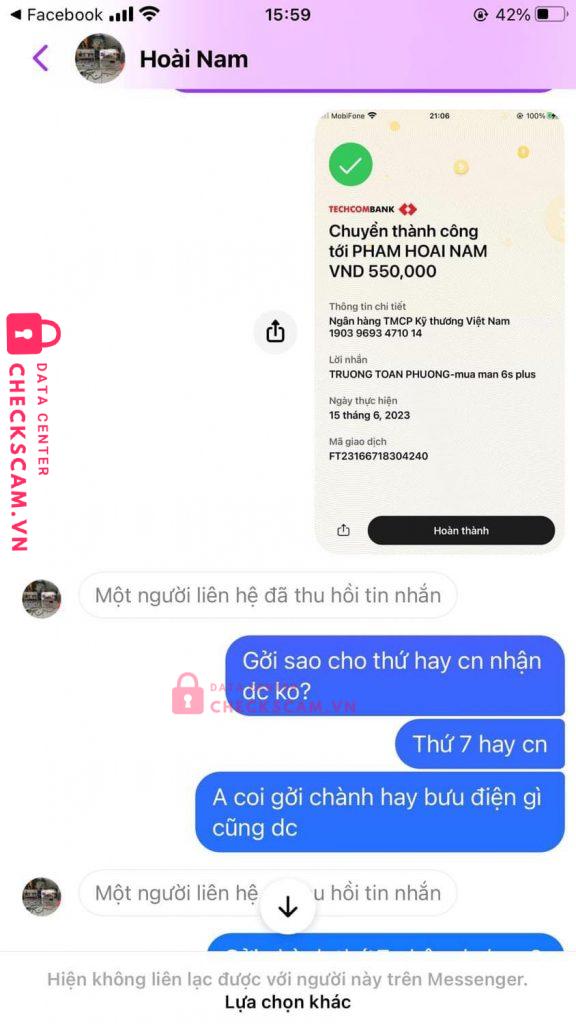 #19039693471014 Techcombank PHAM HOAI NAM lừa đảo