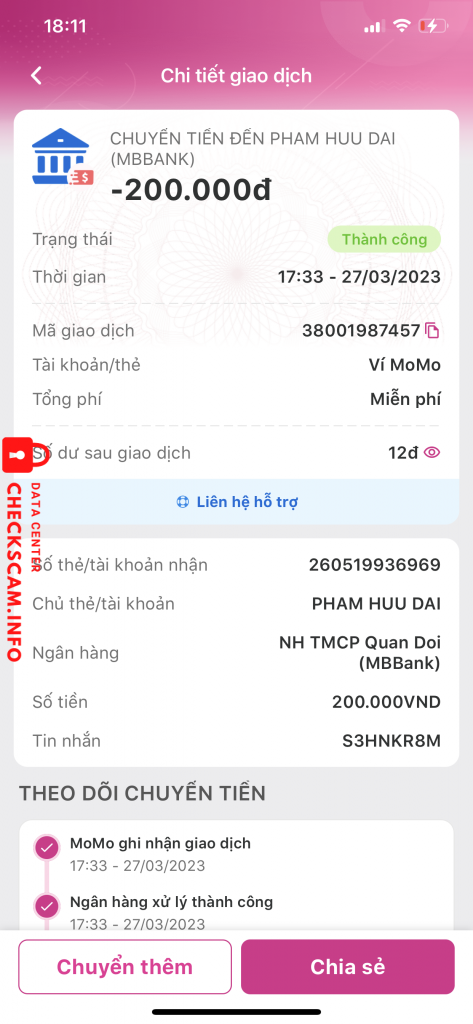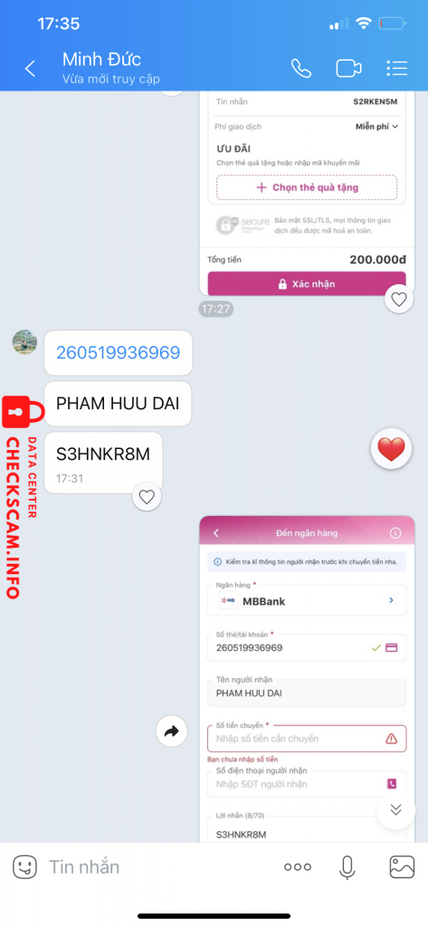 Scammer Alert: Phạm Hữu Đại Reported: November 16, 2024 Scammer Information Full Name: Phạm Hữu Đại Payment Gate: MB Bank Payment Account: 260519936969 Category: Marketplace scams Source: Checkscam Evidence Files Report Description Lừa đảo bán voucher và dụ chuyển khoản Comments Your comment Add Comment No comments yet. Be the first to share your experience with this scammer.
