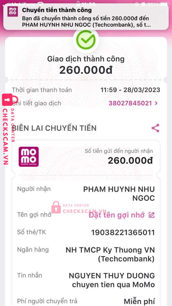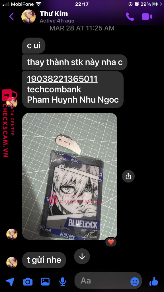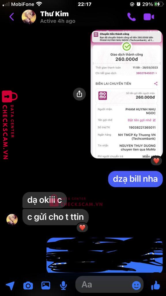 Scammer Alert: Pham Huynh Nhu Ngoc Reported: November 16, 2024 Scammer Information Full Name: Pham Huynh Nhu Ngoc Payment Gate: Techcombank Payment Account: 19038221365011 Category: Marketplace scams Source: Checkscam Evidence Files Report Description ncl người bị hại ko phải 1 mình tôi Comments Your comment Add Comment No comments yet. Be the first to share your experience with this scammer.
