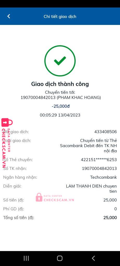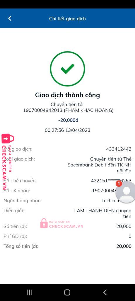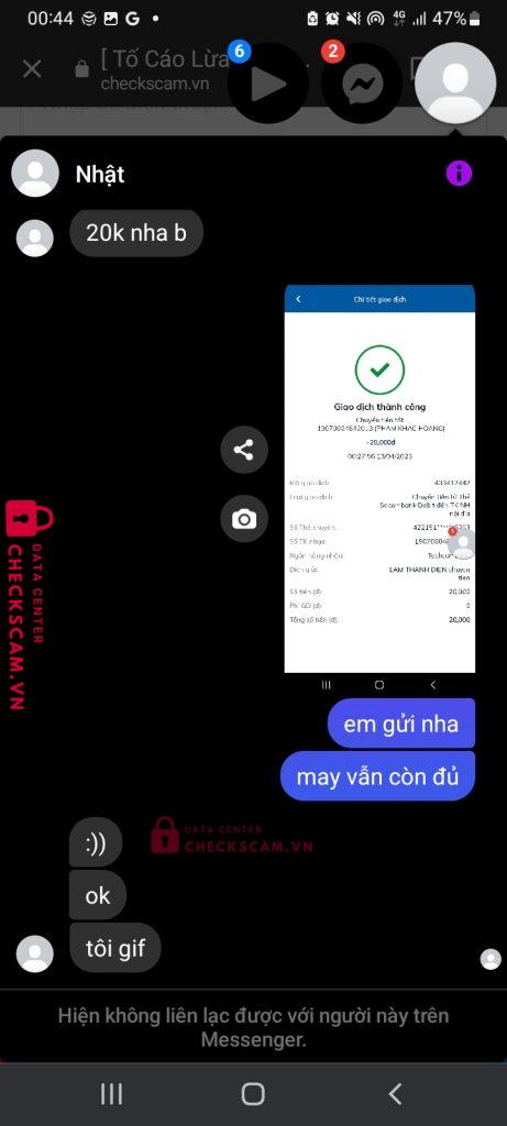 Scammer Alert: PHAM KHAC HOANG Reported: November 16, 2024 Scammer Information Full Name: PHAM KHAC HOANG Payment Gate: Techcombank Payment Account: 19070004842013 Category: Marketplace scams Source: Checkscam Evidence Files Report Description Bán prime nhìn huy hiệu trong group tưởng uy tín, ngờ đâu lần lữ gạ mua nhiều thêm với lí do rất xàm, xong chặn luôn ạ Comments Your comment Add Comment No comments yet. Be the first to share your experience with this scammer.
