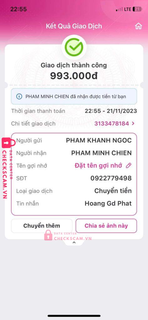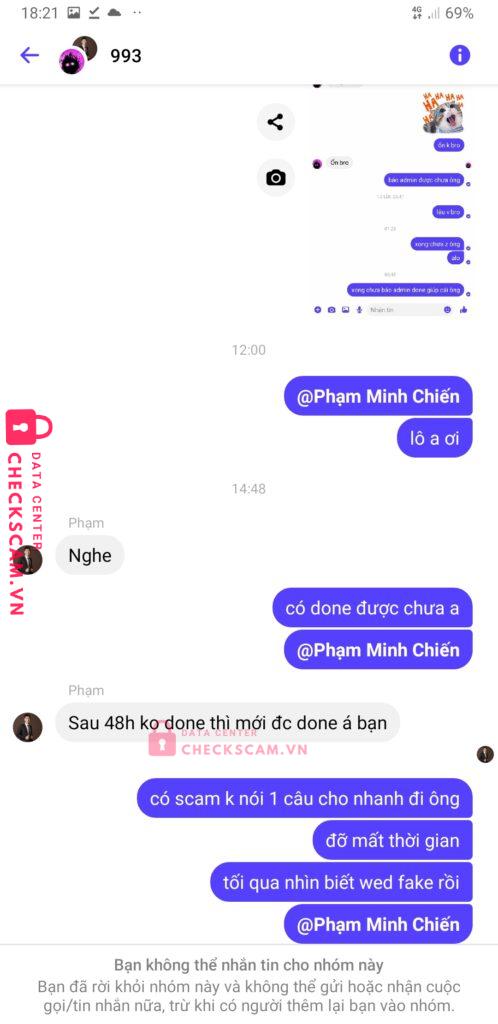 Scammer Alert: Phạm Minh Chiến Reported: November 16, 2024 Scammer Information Full Name: Phạm Minh Chiến Phone Number: 0922779498 Payment Gate: MB Payment Account: 11234981289 Category: Marketplace scams Source: Checkscam Evidence Files Report Description fake admin giao dịch game để lừa đảo Momo: 0922779498 PHAM MINH CHIEN Mb Bank: 11234981289 PHAM MINH CHIEN TSR: 0922776398 Phạm Minh Chiến NapThe1s: 0922776398 Phạm Minh Chiến Gt1s: 0922776398 Phạm Minh Chiến Comments Your comment Add Comment No comments yet. Be the first to share your experience with this scammer.