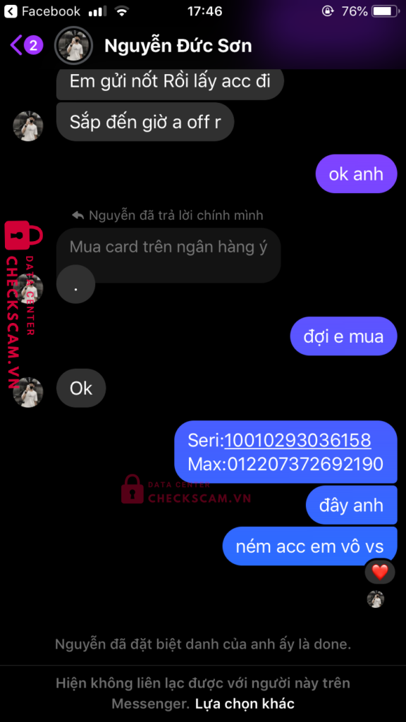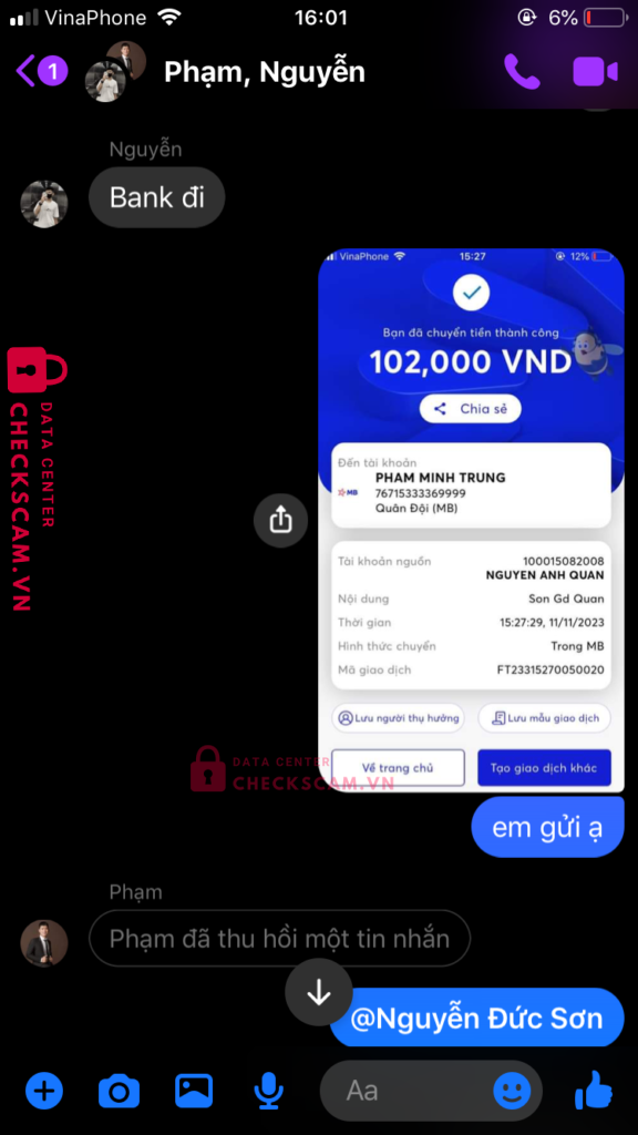 Scammer Alert: PHAM MINH TRUNG Reported: November 16, 2024 Scammer Information Full Name: PHAM MINH TRUNG Payment Gate: MBBANK Payment Account: 76715333369999 Category: Marketplace scams Source: Checkscam Evidence Files Report Description scam mua bán acc ff Comments Your comment Add Comment No comments yet. Be the first to share your experience with this scammer.