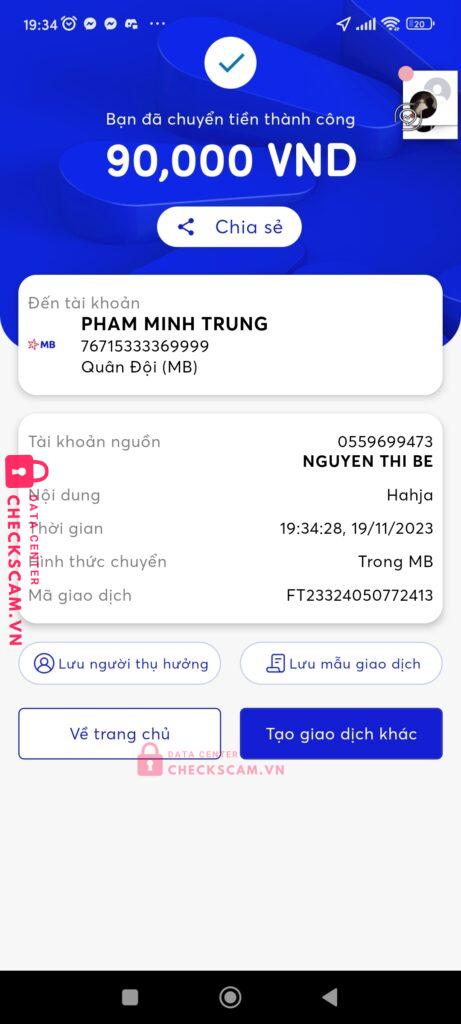 Scammer Alert: PHAM MINH TRUNG Reported: November 16, 2024 Scammer Information Full Name: PHAM MINH TRUNG Payment Gate: Mb bank Payment Account: 76715333369999 Category: Marketplace scams Source: Checkscam Evidence Files Report Description Nói ad đục tk fb xong chuyển thì chạy Comments Your comment Add Comment No comments yet. Be the first to share your experience with this scammer.
