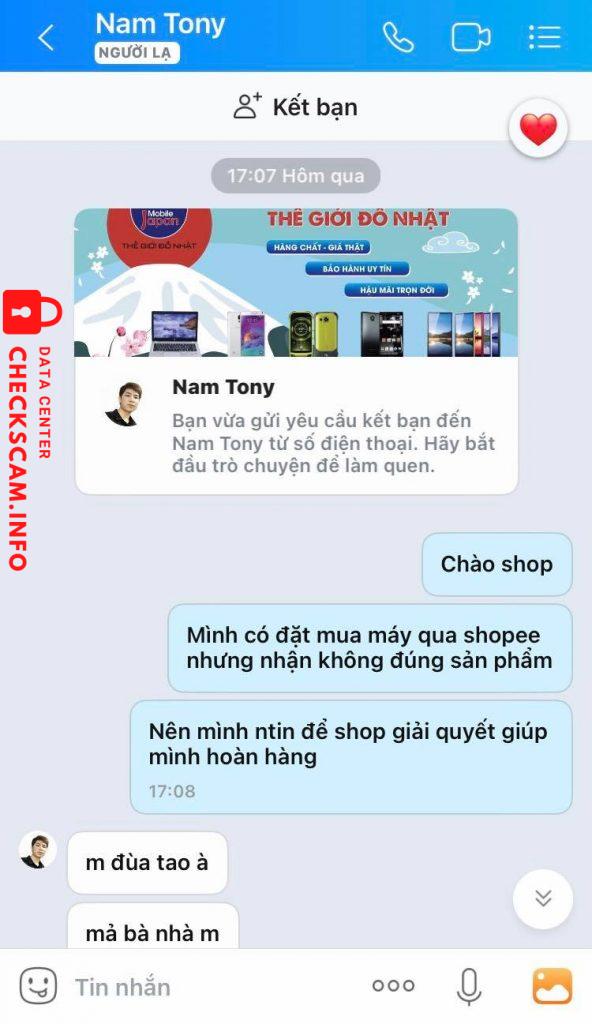 Mình chát ZALO vs SHOPEE thì bị chặn luôn và nói chuyện rất Mất lịch sự với khách hàng, không tôn trọng khách , Chửi Khách hàng rất vô văn hoá