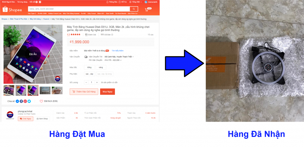 Chuyện sẽ chẳng có gì đáng nói nếu như shop giao đúng sp , nhưng không , không này đúng chất lừa đảo luôn. Mua Máy tính bảng Huawei giá hơn 2 triệu nhưng lại giao cho mình cái FAN Quạt máy tính vài chục nghìn
