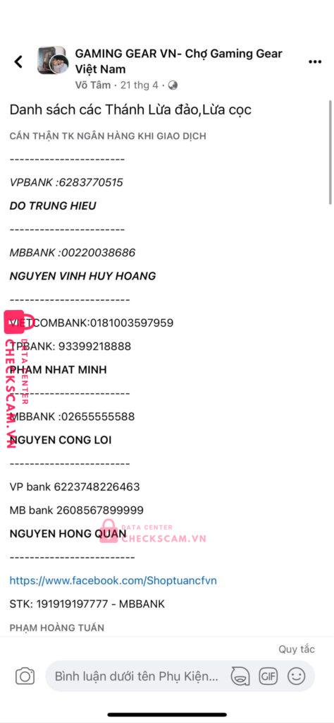 mình có bank mua chuột của bạn này nhưng 3 ngày rồi chưa gữi cho mình tin củng k check . Check trên gruop thì có tên trong ds scam . cảm ơn mn đã bỏ thời gian lọc những loại này .