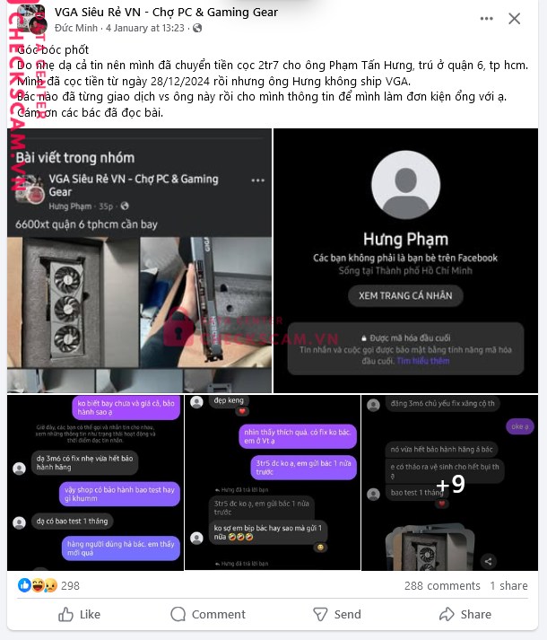 Mình đã cọc tiền từ ngày 28/12/2024 rồi nhưng ông Hưng không ship VGA.