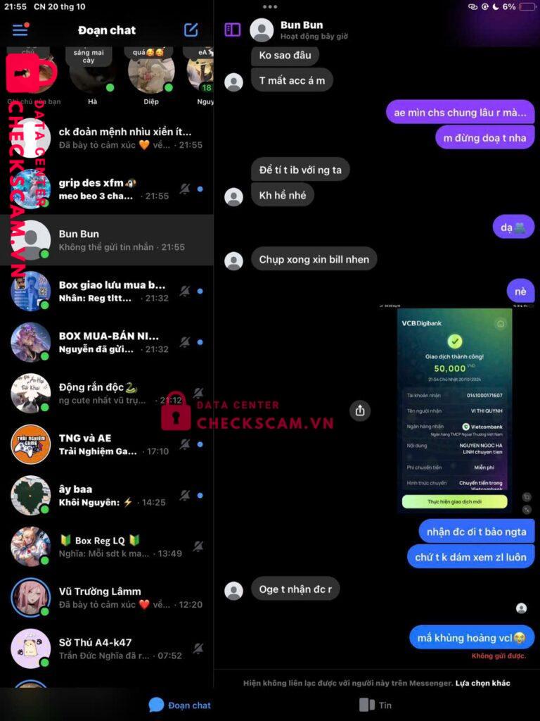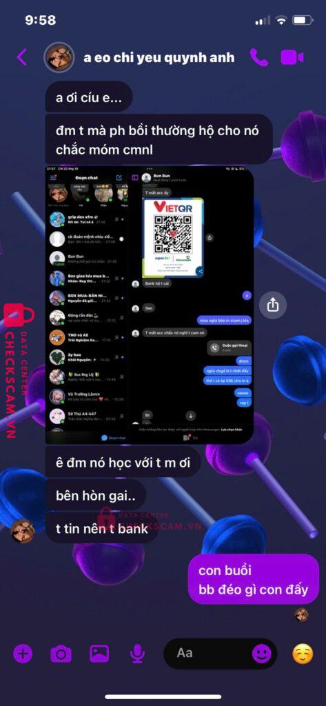 Con Hà này lấy acc clone đi bán truyện, t ck cho xog nó block t , con Hà này mượn tknh của con Linh nhưng con Linh ko có tknh mb nên con Linh này mượn tknh của Anh , ảnh 3 là con Hà mượn tknh của Vi Thị Quỳnh t ko biết là ai , lý do biết con đứng sau vì tknh của bạn Anh này để sdt tôi gọi và tra ra