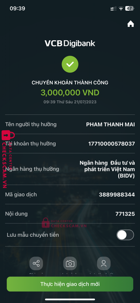 Scammer Alert: PHAM THANH MAI Reported: November 16, 2024 Scammer Information Full Name: PHAM THANH MAI Payment Gate: BIDV Payment Account: 17710000578037 Category: Marketplace scams Source: Checkscam Evidence Files Report Description Lừa đảo việc làm tại nhà Comments Your comment Add Comment No comments yet. Be the first to share your experience with this scammer.