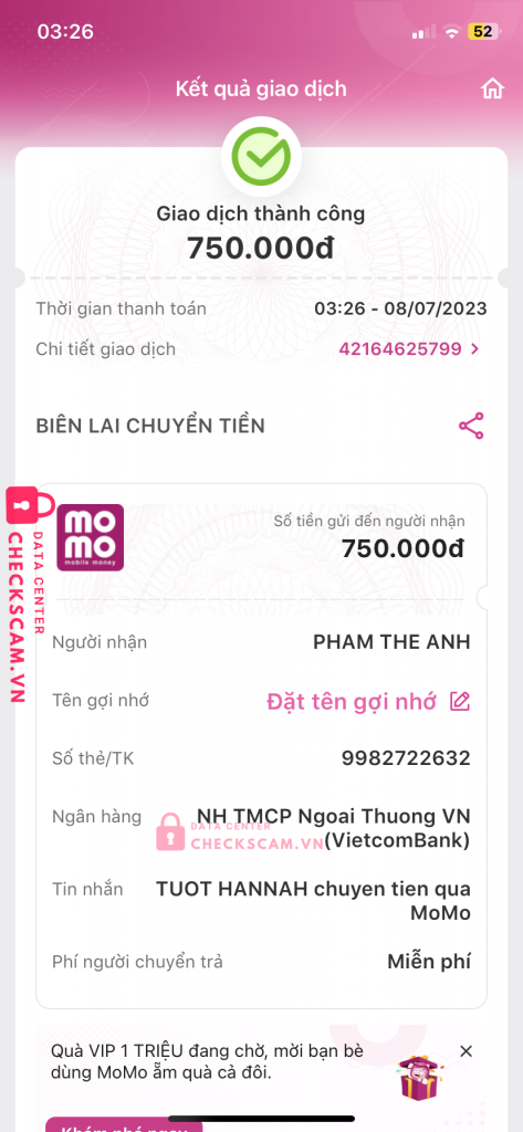Scammer Alert: phạm thế anh Reported: November 16, 2024 Scammer Information Full Name: phạm thế anh Phone Number: 0982722632 Payment Gate: vietcombank Payment Account: 9982722632 Category: Marketplace scams Source: Checkscam Evidence Files Report Description lừa đảo về vấn đề hỗ trợ tìm kiếm thú cưng trên các trang cứu trợ động vâth Comments Your comment Add Comment No comments yet. Be the first to share your experience with this scammer.