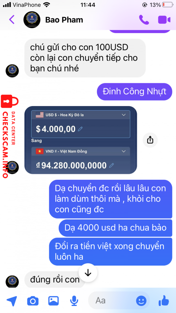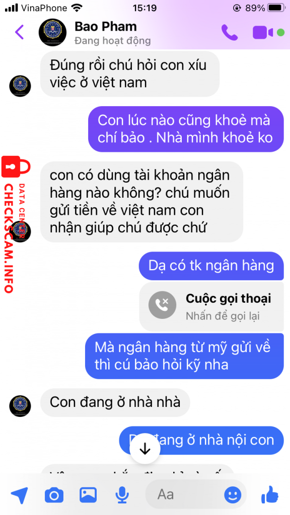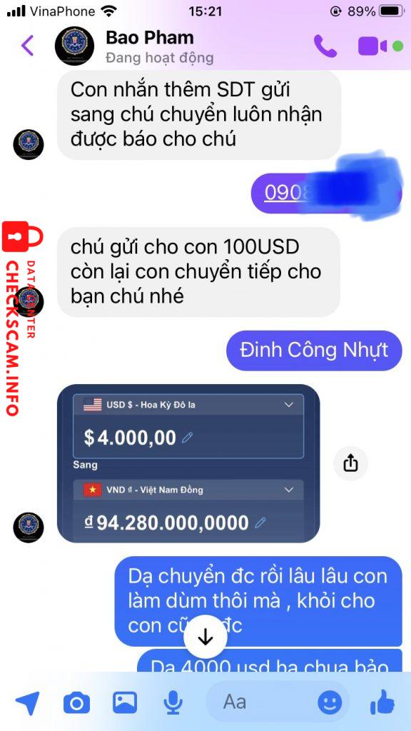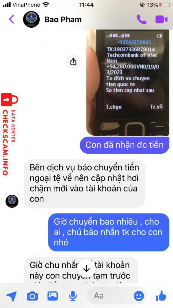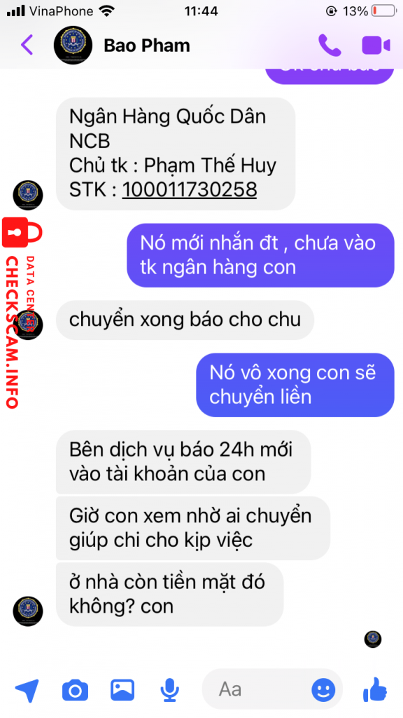 Hack nick người quen . Giả vờ gửi tiền về để gửi cho người khác dùm . Tiền gửi về là ảo ko vô tk mình rồi kêu mình ứng gửi cho người khác . Lừa đảo . Gửi cho toàn bộ người quen của nick hack đc với số tk ngân hàng như trên .