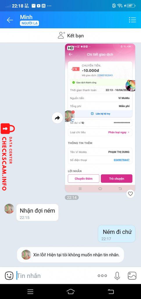 Scammer Alert: Phạm Thị Dung Reported: November 16, 2024 Scammer Information Full Name: Phạm Thị Dung Phone Number: 0338307459 Payment Gate: Momo Payment Account: 0349078447 Category: Marketplace scams Source: Checkscam Evidence Files Report Description Scam acc tiktok gdtg lừa đảo Comments Your comment Add Comment No comments yet. Be the first to share your experience with this scammer.