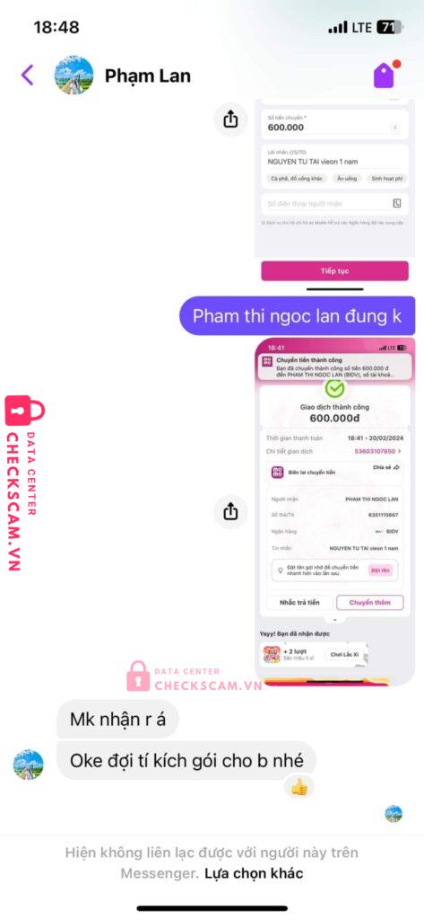 Scammer Alert: PHAM THI NGOC LAN Reported: November 16, 2024 Scammer Information Full Name: PHAM THI NGOC LAN Payment Gate: BIDV Payment Account: 6351115667 Category: Marketplace scams Source: Checkscam Evidence Files Report Description Scam bán account tài khoản vip ???? Comments Your comment Add Comment No comments yet. Be the first to share your experience with this scammer.