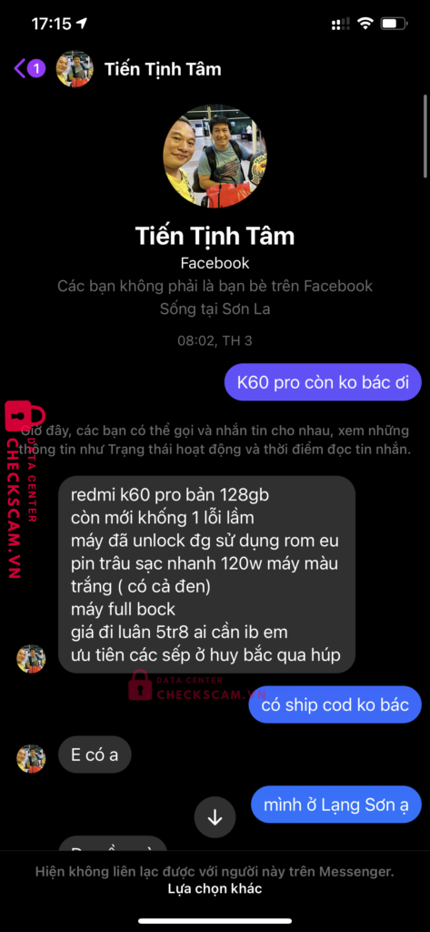 Anh em cẩn thận thanh niên Phù Yên Sơn La này chuyên lừa cọc nhé, buôn bán ở khá nhiều trang từ fly cam đến máy tính, điện thoại…., giờ block mình rồi k tag đc nhưng ae nhớ cẩn thận k mất cọc oan nhé