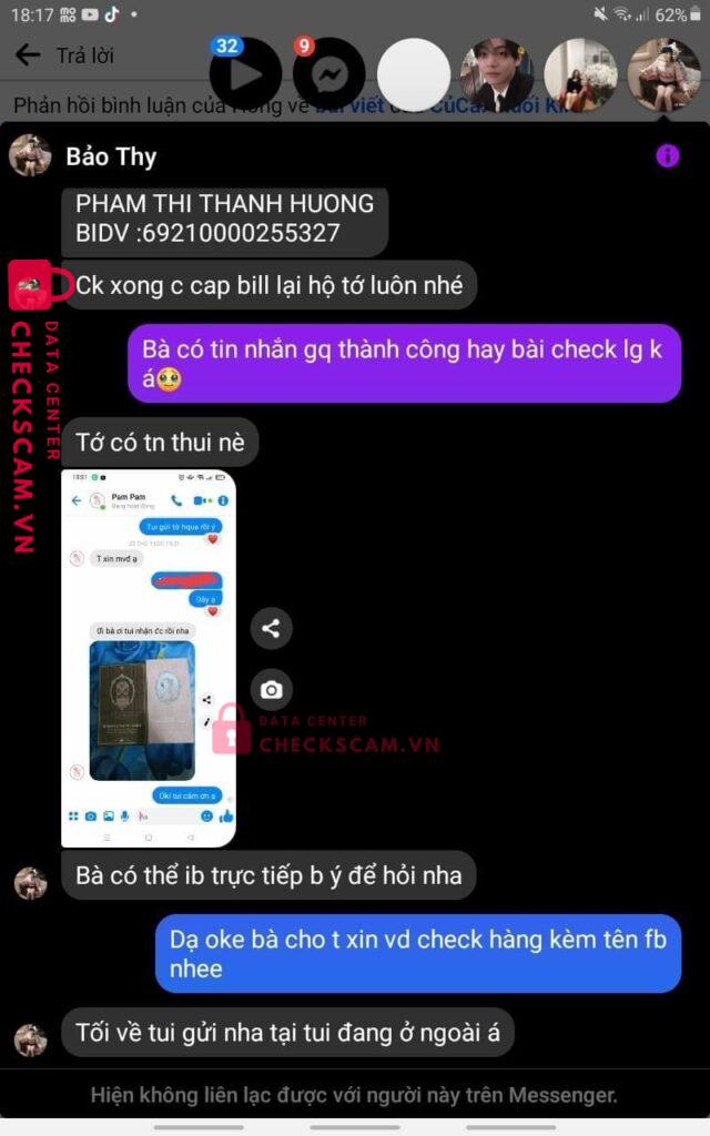 Scammer Alert: PHẠM THỊ THANH HUONG Reported: November 16, 2024 Scammer Information Full Name: PHẠM THỊ THANH HUONG Payment Gate: BIDV Payment Account: 69210000255327 Category: Marketplace scams Source: Checkscam Evidence Files Report Description Scam flower know nè Comments Your comment Add Comment No comments yet. Be the first to share your experience with this scammer.