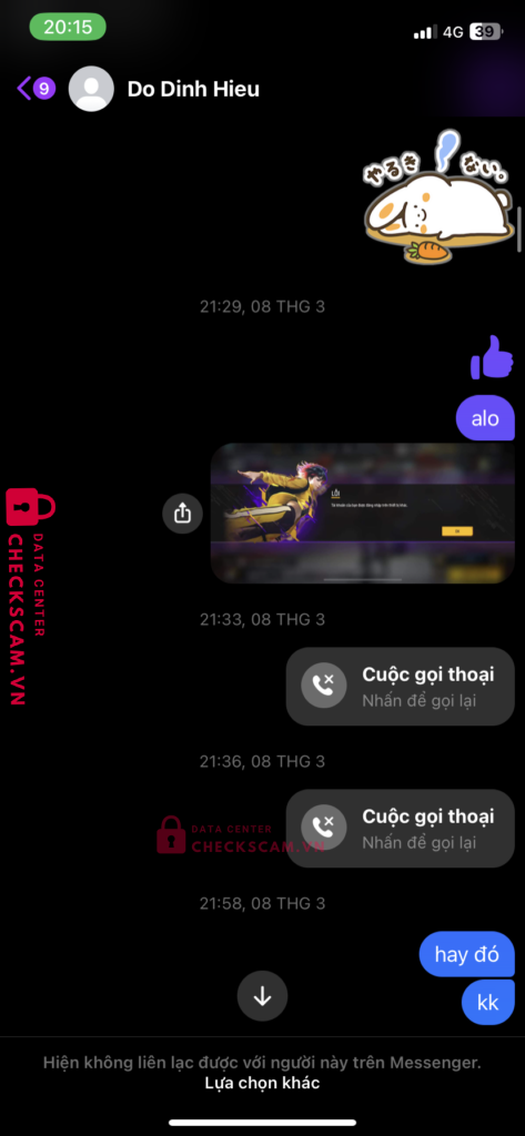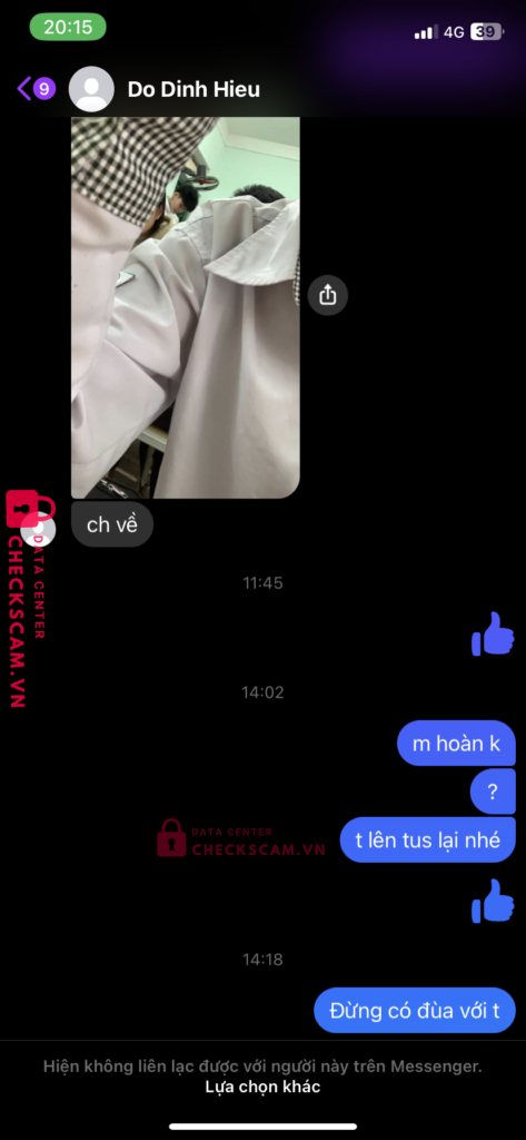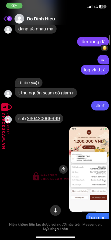 Scammer Alert: Pham Thi Thuy Reported: November 16, 2024 Scammer Information Full Name: Pham Thi Thuy Payment Gate: SHB Payment Account: 230420069999 Category: Marketplace scams Source: Checkscam Evidence Files Report Description Thu nick dlk về bán ttt, mua bán lom don lừa đảo khách hàng Comments Your comment Add Comment No comments yet. Be the first to share your experience with this scammer.