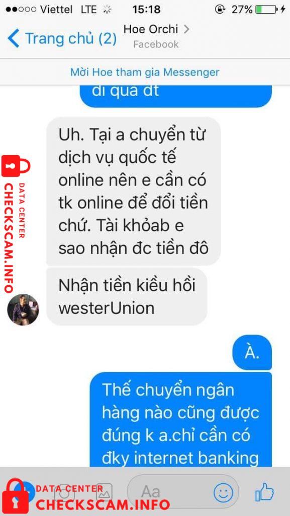 Nó nói vck nó buôn bán bên anglola ( mn đọc tn sẽ rõ) sau đó nó nói là chuyển tiền luôn cho e,e thì cũng nhẹ dạ nghĩ ngta buôn bán nv nên làm ăn nhanh gọn lại cộng thêm e chưa tìm hiểu mấy vụ chuyển tiền nong từ nước ngoài về bao giờ nên bị dắt mũi.