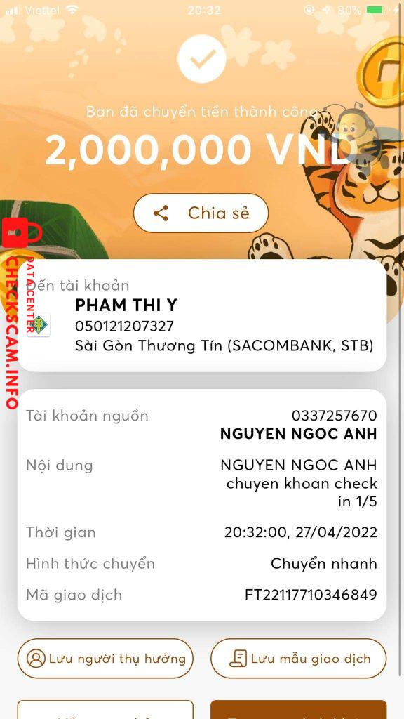 Scammer Alert: Phạm Thị Ý Reported: November 16, 2024 Scammer Information Full Name: Phạm Thị Ý Payment Gate: Sacombank Payment Account: 050121207327 Category: Marketplace scams Source: Checkscam Evidence Files Report Description kêu cọc vila xong scam block, lần sau ai đặt hay mua gì phải cẩn thận nhé! Comments Your comment Add Comment No comments yet. Be the first to share your experience with this scammer.
