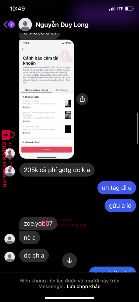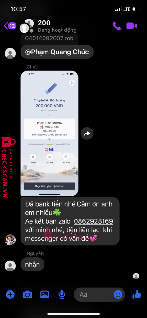 Scammer Alert: pham thuy duong Reported: March 7, 2025 Scammer Information Full Name: pham thuy duong Payment Gate: Mb Payment Account: 04014092007 Category: Marketplace scams Source: Checkscam Evidence Files Report Description Back kênh tiktok Comments Your comment Add Comment No comments yet. Be the first to share your experience with this scammer.