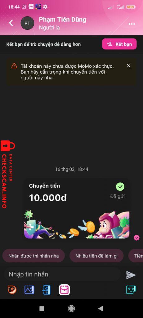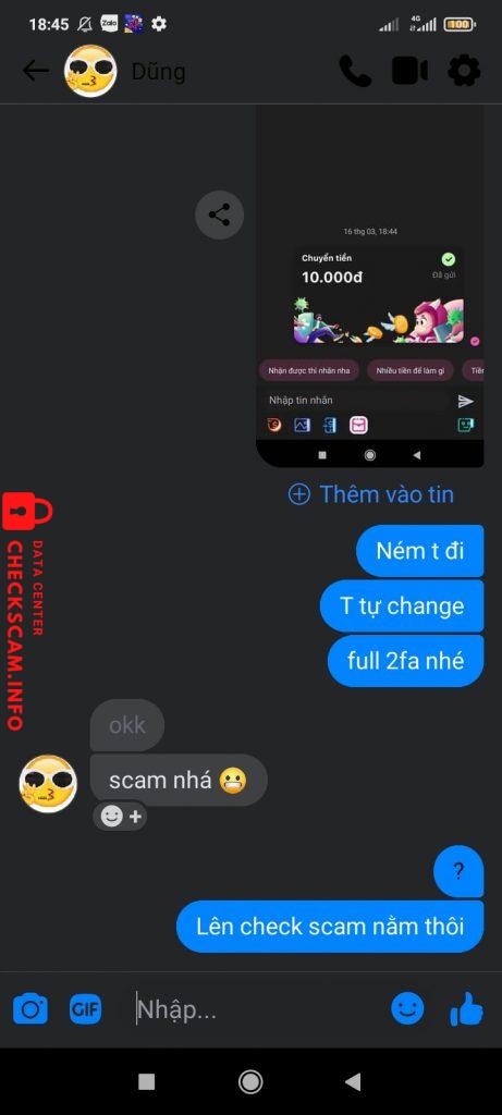 Scammer Alert: Phạm Tiến Dũng Reported: November 16, 2024 Scammer Information Full Name: Phạm Tiến Dũng Phone Number: 0386620116 Payment Gate: MoMo Payment Account: 0386620116 Category: Marketplace scams Source: Checkscam Evidence Files Report Description Lừa đảo bán acc via cổ Comments Your comment Add Comment No comments yet. Be the first to share your experience with this scammer.