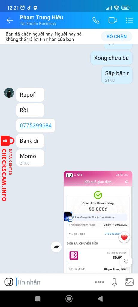Scammer Alert: Pham Trung Hieu Reported: November 16, 2024 Scammer Information Full Name: Pham Trung Hieu Phone Number: 0793346394 Payment Gate: MoMo Payment Account: 0775399684 Category: Marketplace scams Source: Checkscam Evidence Files Report Description scam sub Comments Your comment Add Comment No comments yet. Be the first to share your experience with this scammer.