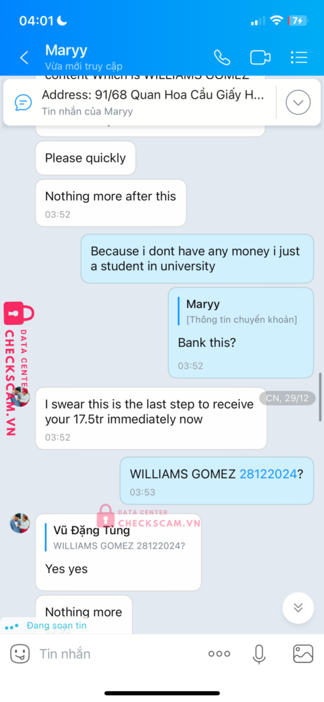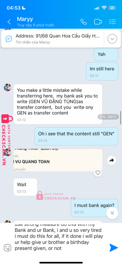 Là người mua nhưng mà lại kêu chuyển tiền trước xong dồi fake ip nước ngoài sau đó là kêu chuyển tiền để nhận, còn có cả phí dịch vụ và hold tiền quốc tế và phải ghi cú pháp sai nó lại lừa thêm
