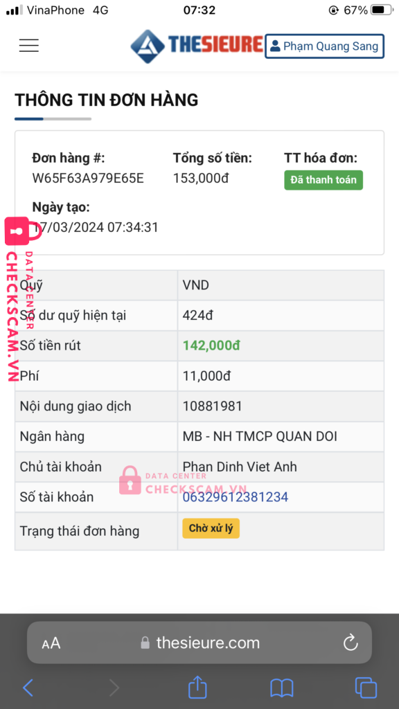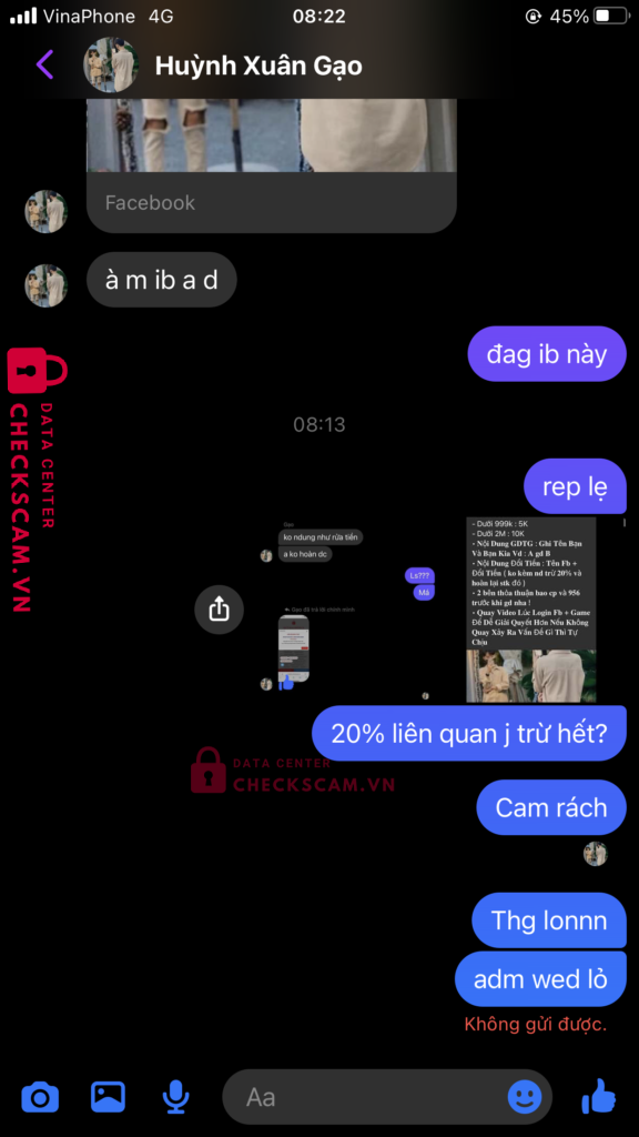 Scammer Alert: Phan Đinh Viet Anh Reported: November 16, 2024 Scammer Information Full Name: Phan Đinh Viet Anh Payment Gate: Mb quân đội Payment Account: 06329612381234 Category: Marketplace scams Source: Checkscam Evidence Files Report Description Tôi muốn tố cáo scam nó đã scam 140k của tôi mong admin checkscam.vn có thể biết để mn không bị nó scam giống tôi ạ Comments Your comment Add Comment No comments yet. Be the first to share your experience with this scammer.