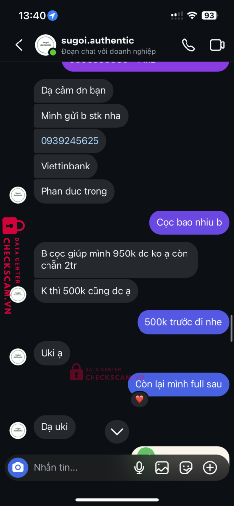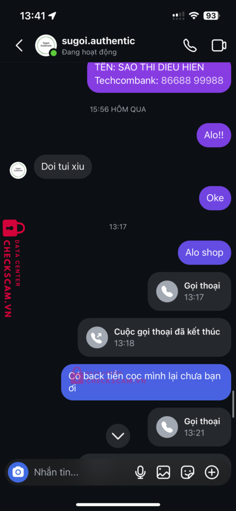 Lừa đảo bán giày nhận cọc của tôi 500.000vnd, và không có dấu hiệu hoàn trả khi ngày hẹn giao hàng không có hàng, và không có dấu hiệu nghe gọi và muốn trả lại.