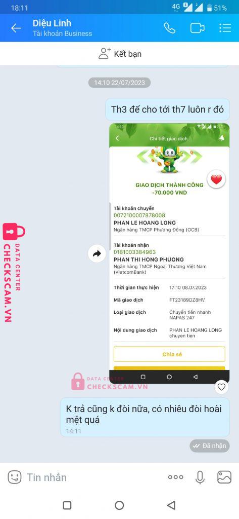 Scammer Alert: Phan Thị Hồng Phượng Reported: November 16, 2024 Scammer Information Full Name: Phan Thị Hồng Phượng Payment Gate: Vietcombank Payment Account: 0181003384963 Category: Marketplace scams Source: Checkscam Evidence Files Report Description Mới quen ck xong im luôn k chịu trả Comments Your comment Add Comment No comments yet. Be the first to share your experience with this scammer.