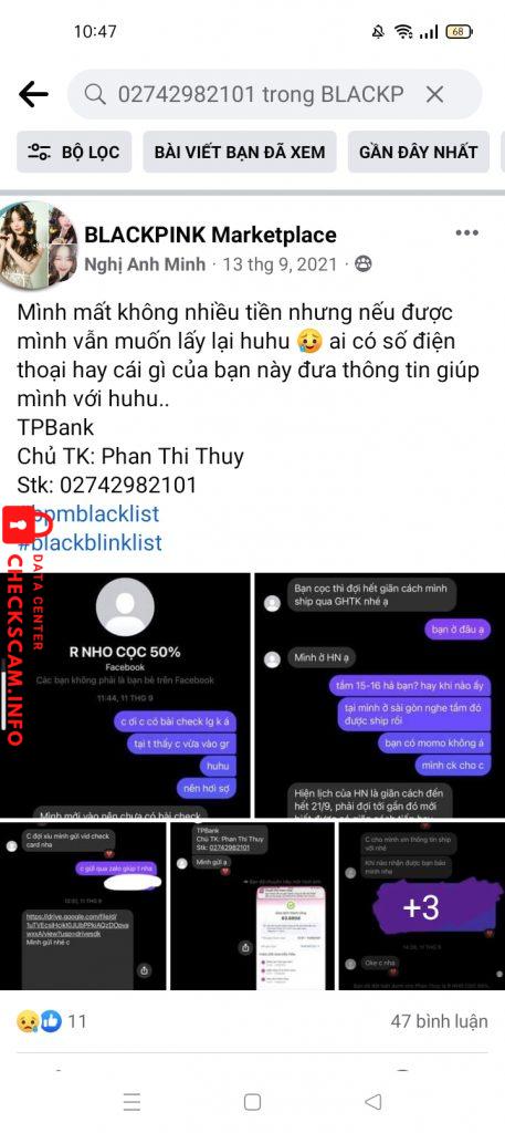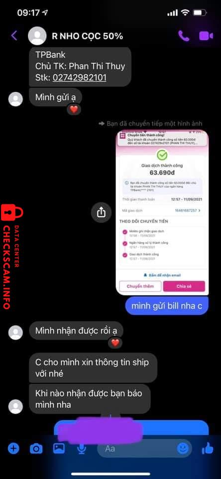 Scammer Alert: PHAN THI THUY Reported: November 16, 2024 Scammer Information Full Name: PHAN THI THUY Phone Number: 02742982101 Payment Gate: TP BANK Payment Account: 02742982101 Category: Marketplace scams Source: Checkscam Evidence Files Report Description scammer, lừa đảo, nhây ship, lừa đảo ở nhiều group khác Comments Your comment Add Comment No comments yet. Be the first to share your experience with this scammer.