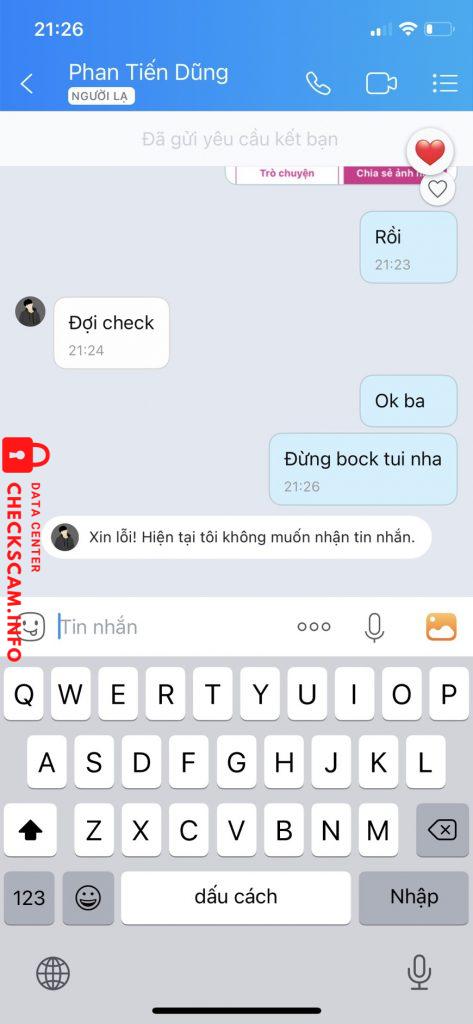 Scammer Alert: PHAN TIẾN DŨNG Reported: November 16, 2024 Scammer Information Full Name: PHAN TIẾN DŨNG Phone Number: 0385206854 Payment Gate: Momo Payment Account: 0385206854 Category: Marketplace scams Source: Checkscam Evidence Files Report Description Scam acc 9/209 lock Comments Your comment Add Comment No comments yet. Be the first to share your experience with this scammer.