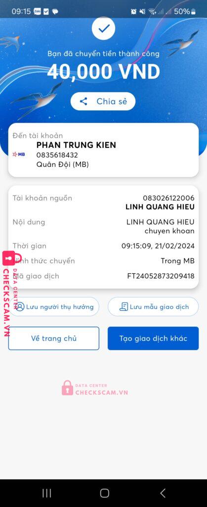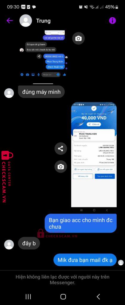 Scammer Alert: Phan Trung Kiên Reported: November 16, 2024 Scammer Information Full Name: Phan Trung Kiên Payment Gate: MB bank Payment Account: 0835618432 Category: Marketplace scams Source: Checkscam Evidence Files Report Description Lừa đảo mua bán tài khoản game Comments Your comment Add Comment No comments yet. Be the first to share your experience with this scammer.