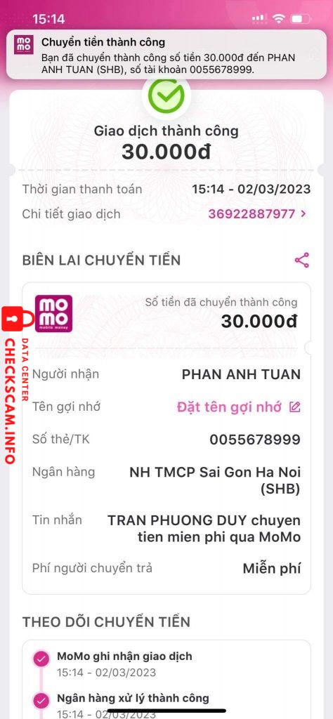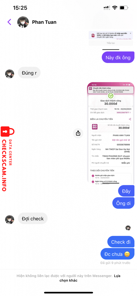 Scammer Alert: Phan Tuan Reported: November 16, 2024 Scammer Information Full Name: Phan Tuan Payment Gate: SHB Payment Account: 00556789999 Category: Marketplace scams Source: Checkscam Evidence Files Report Description Scam acc cổ fb ae nên né Comments Your comment Add Comment No comments yet. Be the first to share your experience with this scammer.