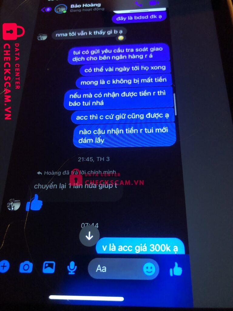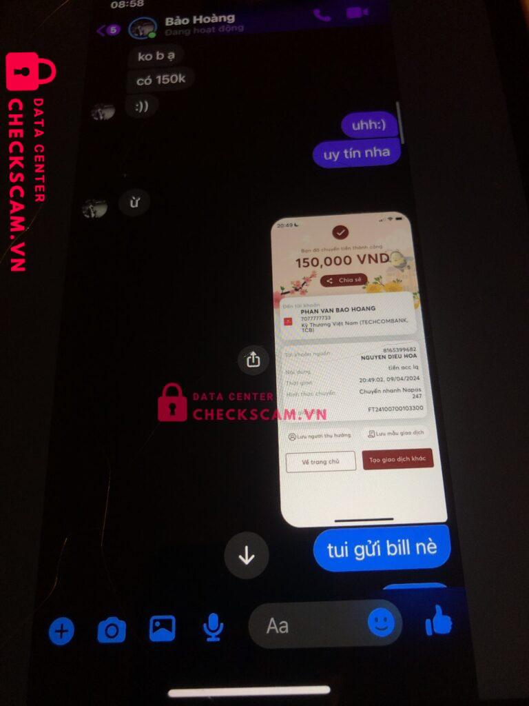 Scammer Alert: PHAN VAN BAO HOANG Reported: November 16, 2024 Scammer Information Full Name: PHAN VAN BAO HOANG Payment Gate: Techcombankk Payment Account: 7077777733 Category: Marketplace scams Source: Checkscam Evidence Files Report Description trắng trợn v :))))))) Comments Your comment Add Comment No comments yet. Be the first to share your experience with this scammer.
