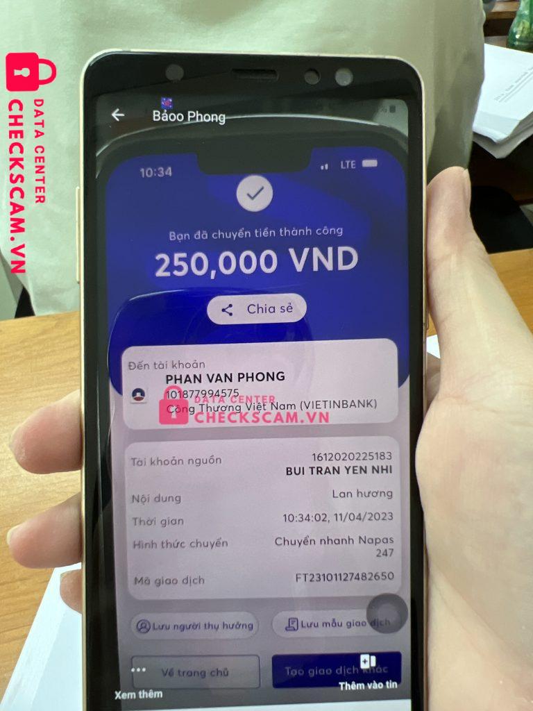 Scammer Alert: Phan Van Phong Reported: November 16, 2024 Scammer Information Full Name: Phan Van Phong Payment Gate: Vietinbank Payment Account: 101877994575 Category: Marketplace scams Source: Checkscam Evidence Files Report Description Lừa chuyển tiền xong block, khốn nạn Comments Your comment Add Comment No comments yet. Be the first to share your experience with this scammer.