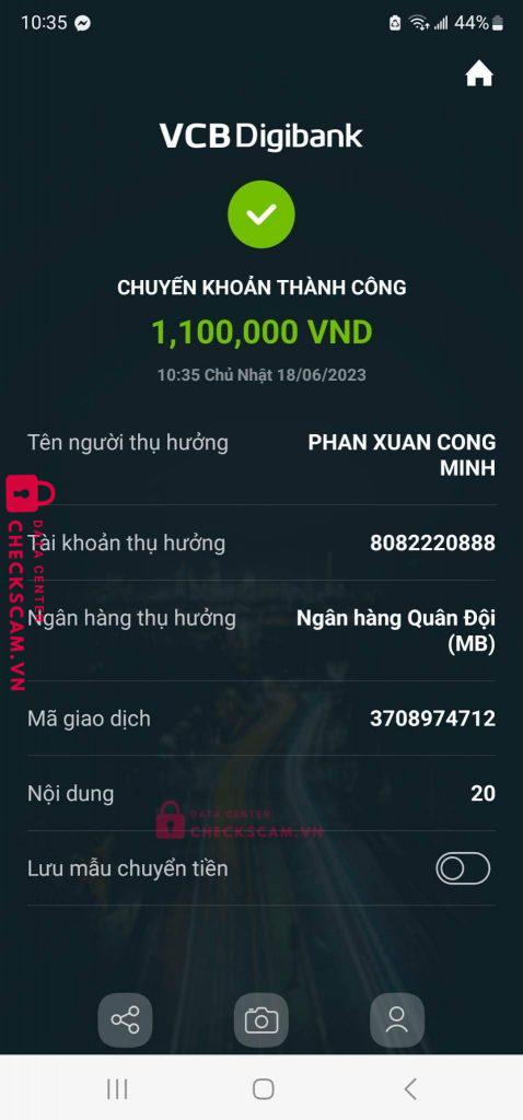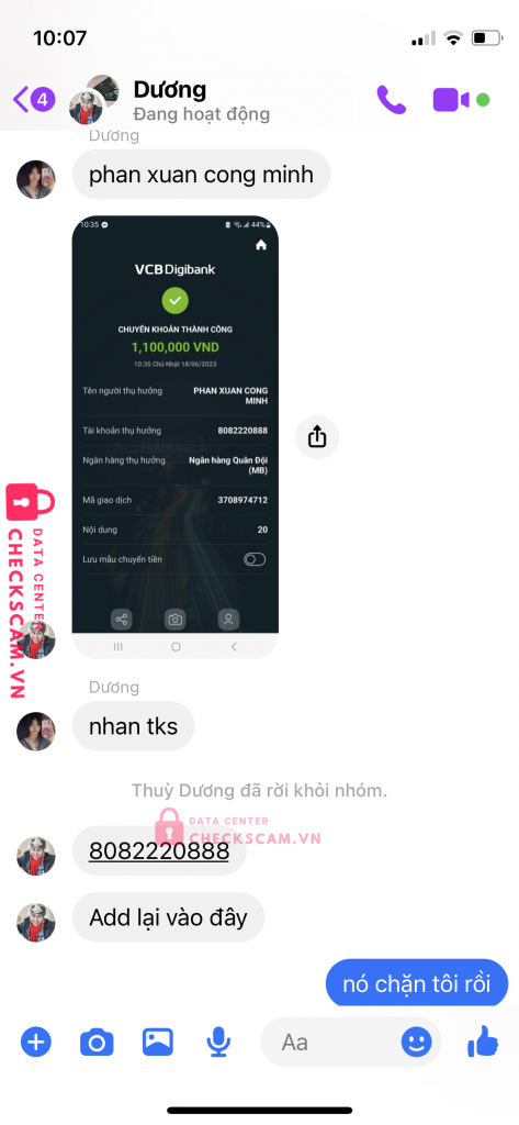 Scammer Alert: Phan xuan cong minh Reported: November 16, 2024 Scammer Information Full Name: Phan xuan cong minh Payment Gate: MB bank Payment Account: 8082220888 Category: Marketplace scams Source: Checkscam Evidence Files Report Description scam bán group xong back lại Comments Your comment Add Comment No comments yet. Be the first to share your experience with this scammer.