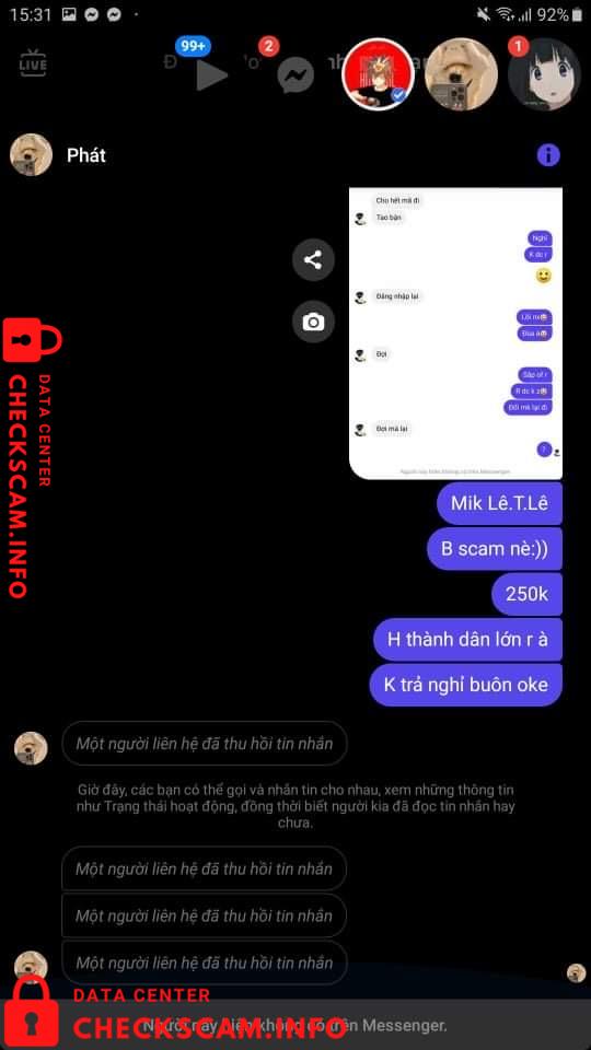 Scammer Alert: Phát Chuối Reported: November 16, 2024 Scammer Information Full Name: Phát Chuối Phone Number: 0974780865 Payment Gate: Momo Payment Account: 0974780865 Category: Marketplace scams Source: Checkscam Evidence Files Report Description Nó scam người ta 250k Comments Your comment Add Comment No comments yet. Be the first to share your experience with this scammer.