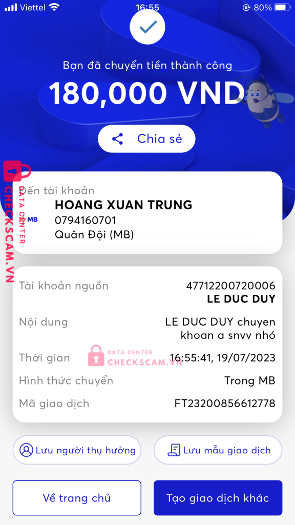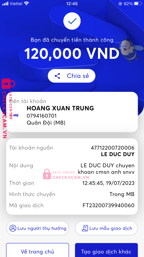 Scammer Alert: Phong hoàng Reported: November 16, 2024 Scammer Information Full Name: Phong hoàng Phone Number: 0348756397 Payment Gate: Mb bank Payment Account: 0794160701 Category: Marketplace scams Source: Checkscam Evidence Files Report Description Scam Comments Your comment Add Comment No comments yet. Be the first to share your experience with this scammer.